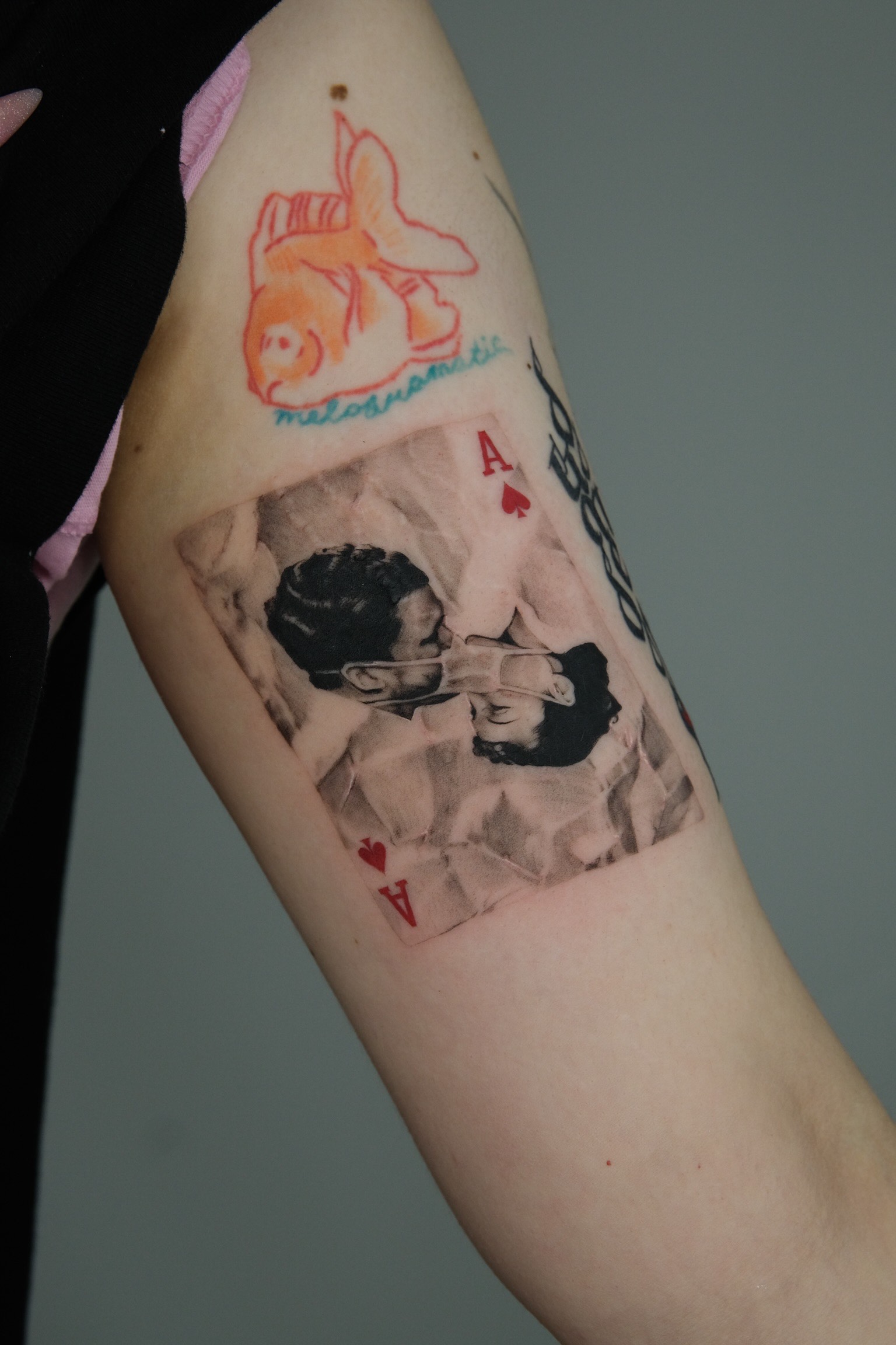 Первый раз увидела татуировку на незнакомом дедушке на пляже, решила для себя, что он прекрасен. Так и понеслось. Второе столкновение произошло на просторах вк тату пабликов, меня дико привлекали забитые полностью девушки, и я для себя четко решила ещё тогда, что обязательно сделаю так же. Я росла, мысль не уходила, но трансформировалась в желание встать с другой стороны, рисовать на коже, а не быть холстом. А пока я бездумно изрисовывала тетради по алгебре. Я училась спокойно и довольно легко, особого интереса не высказывая к наукам, разве что потешить эго иногда хотелось, зато все предложения «нарисовать плакаты, декорации и тд» принимала без раздумий, в результате брала работу домой и продолжала рисовать ночью.