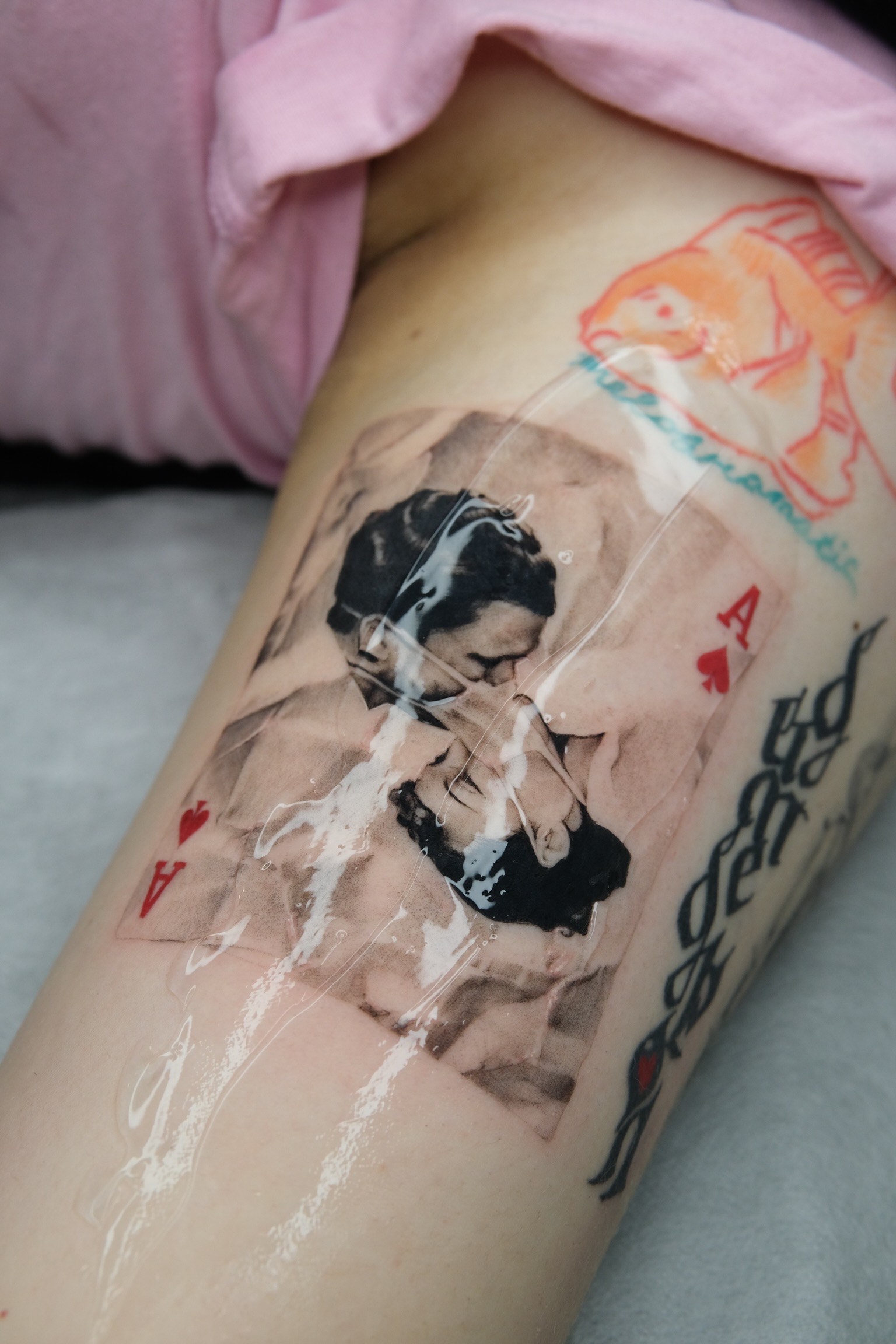 Мы встретились, и, как позже говорила Соня, случился окончательный мэтч. У меня же после нашей встречи в голове стоял тупой звон, я не осознавая окружающий мир, профигачила пешком три станции метро. Через месяц мы стали работать вместе, Соня детально объяснила за один или два дня базу, на третий день я делала первую татуировку на модели бесплатно. Мне не терпелось начать, я торопилась рисовать по коже как на бумаге. Каждый раз , когда соня забирала у меня тачку, чтобы объяснить моменты работы, внутри постоянно что-то падало вниз и казалось, что меня вот вот прогонят. Страха перед кожей не было, был страх, что придётся уйти.