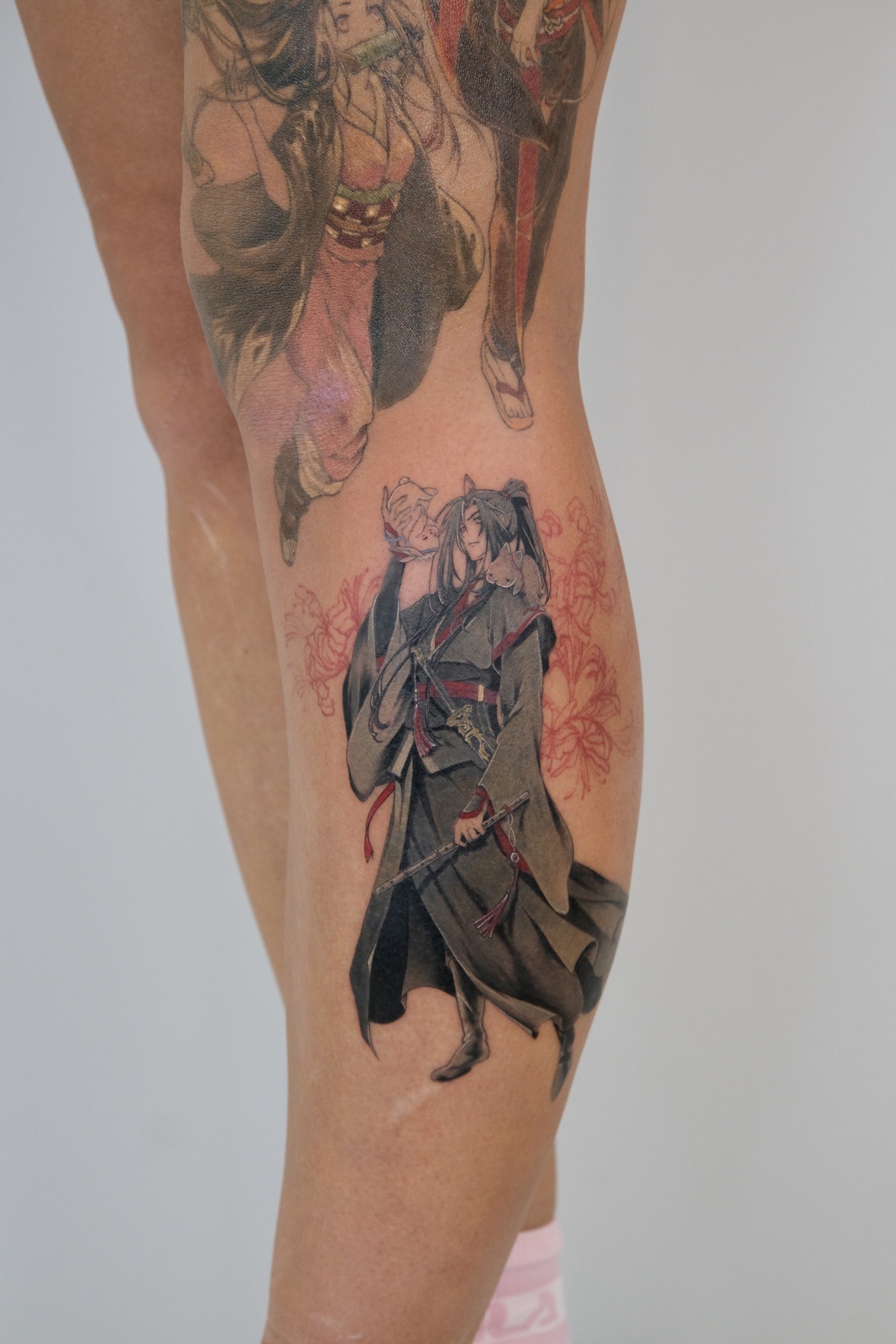 В универе ничего не изменилось, несколько раз я совершенно забивала на учебу и проводила дни и ночи (буквально засыпала на холстах) за прорисовкой декораций к очередному мало относящемуся к учебе мероприятию, меня полностью захватывал процесс. Три года назад, перед выпуском, желание взяться за татуировки вновь выплыло на поверхность, но меня злила мысль о том, что я «должна» в начале пути делать партаки, я совершенно не хотела такого начала.